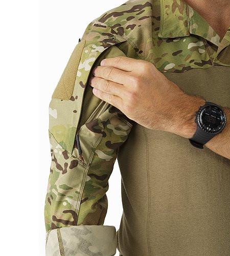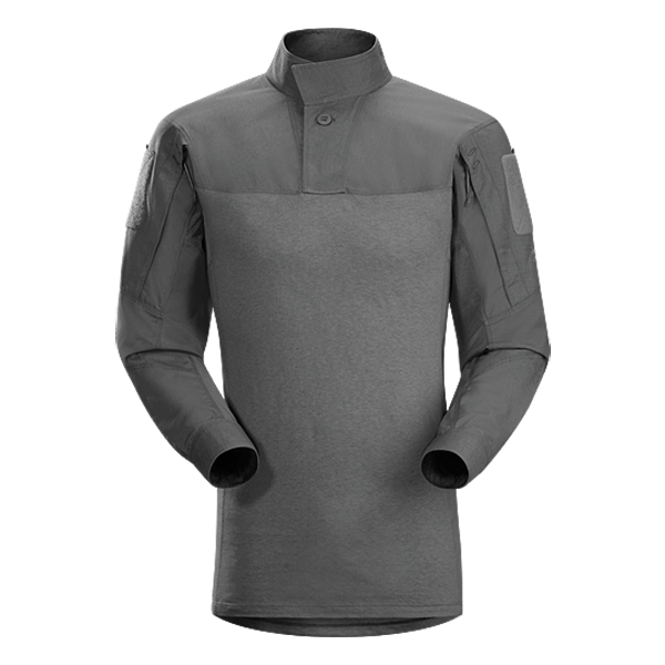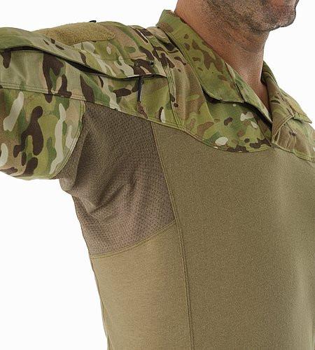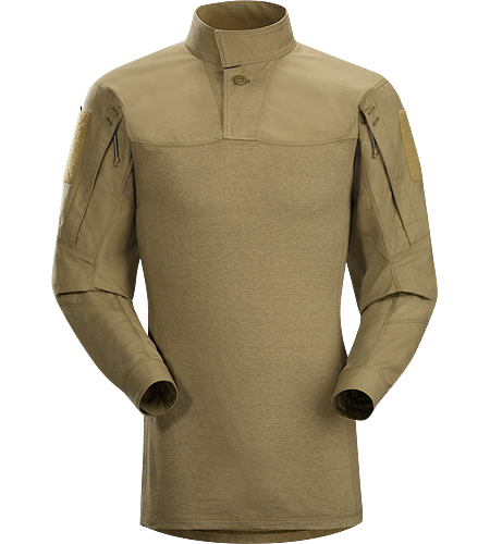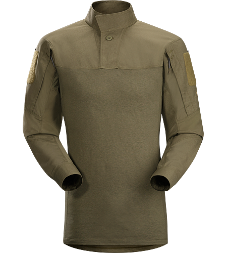 Arc'teryx LEAF created another purpose built garment for the warrior. This combat shirt has a hybrid collar, button placket, no melt/ no drip fabric that breaths well for quick dry. The fit is made for the soldier to wear a base layer under it and is compatible with body armour. Comes with elbow pad inserts.