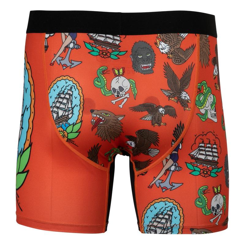 Salior Harry collages traditional flash tattoo art, pinups, ships & animals, oh my!  These classics are a close second to getting ink. Match you Sailor Harriet. Made from the same 4 way stretch breathable moisture wicking material as the TD Shooter Shirt.  Keeps you dry while battling the gym or day to day missions. 6" inseam