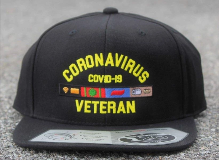 Our Dangerous Goods™️ ‘Coronavirus Veteran’ Hats Feature an array of 4 Ribbons, Signifying Maintaining Wifi Connection, Corona Survival, Hand Sanitization, and Toilet Paper Shortage Survival.