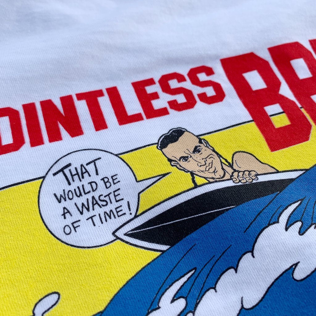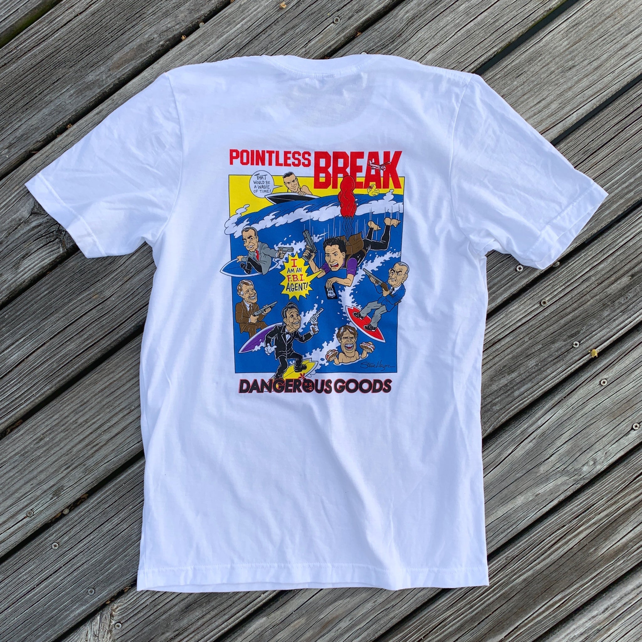 This Premium T-Shirt Features the All New ‘Pointless Break’ Artwork in Full Color, and Includes All of Your Favorite Rad Bank Robbing, FBI Badge Carrying, Meatball Sandwich Eating Characters!
