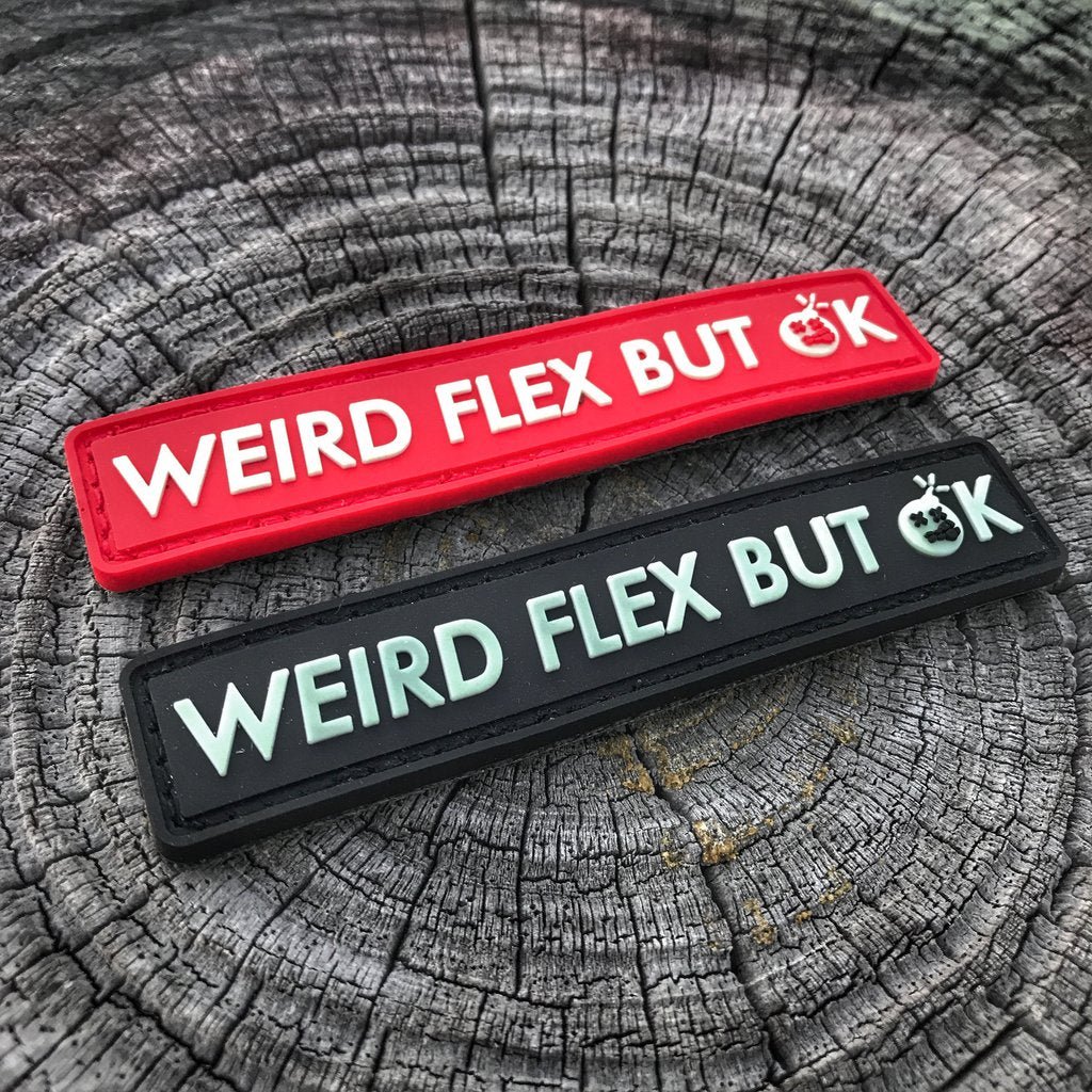 Whatever floats your boat. 'WEIRD FLEX BUT OK" PVC morale patch with Glow In The Dark font.
