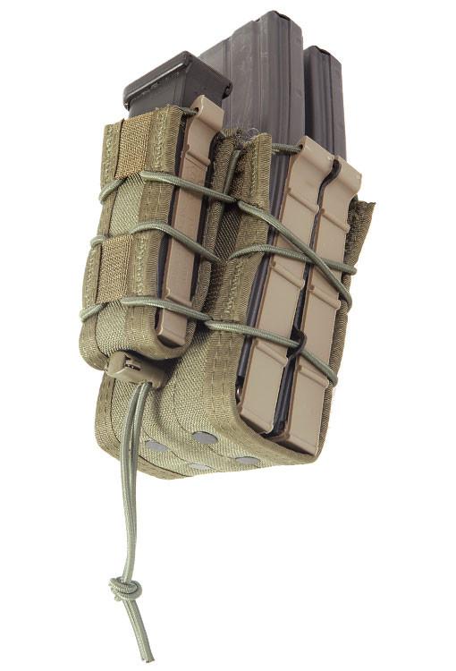 The X2RP TACO from High Speed Gear is a combination double rifle and single pistol magazine pouch. Not only will it hold AR type mags including P-MAGS, it will also hold Magazines for the AK, FAL, M14, SR25, M1A1, G3, Saiga 12, and more.